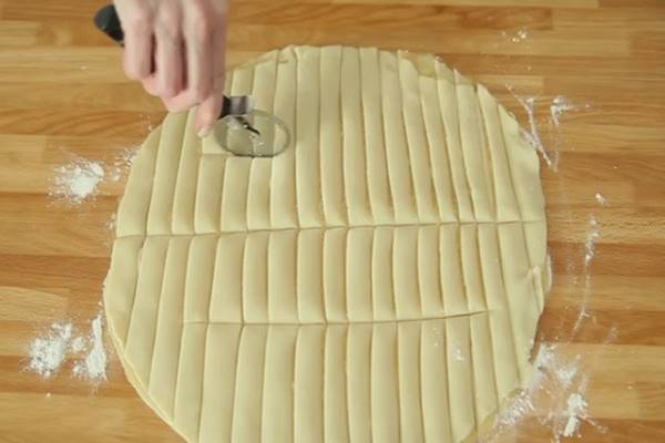 Elkészítés: A sütőt melegítsük elő 175 fokra. Az almát turmixoljuk pépesre, kenjük meg az egyik fagyasztott tésztalapot, majd borítsuk rá a másikat. Vágjuk csíkokra, kenjük meg a felvert tojással, majd szórjuk meg a fahéjas, szerecsendiós cukorral.
